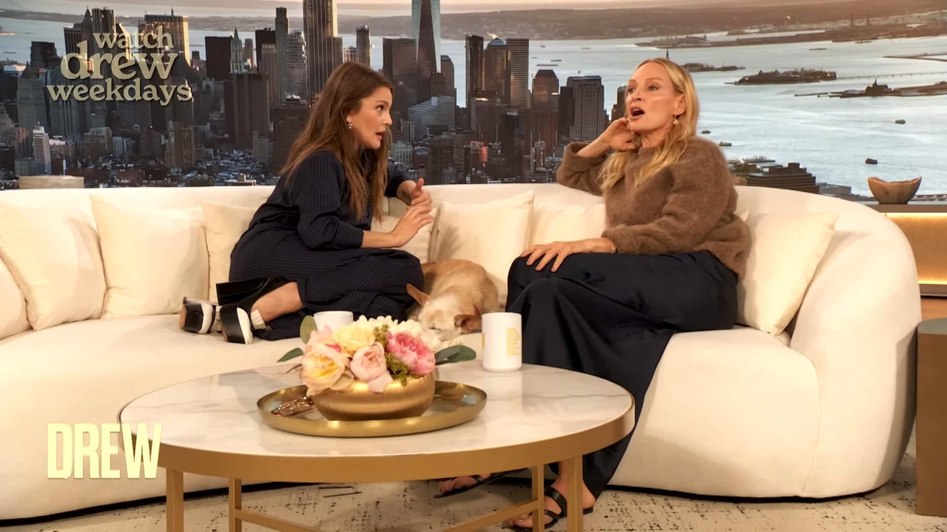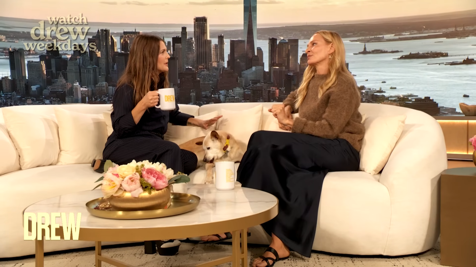 Blonde bombshell, actress extraordinaire Uma Thurman sits down with Drew Barrymore on here popular daytime talky program.