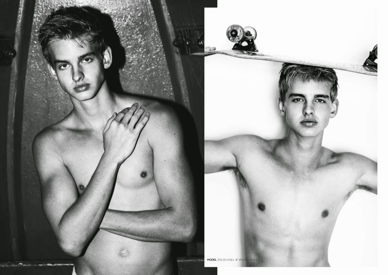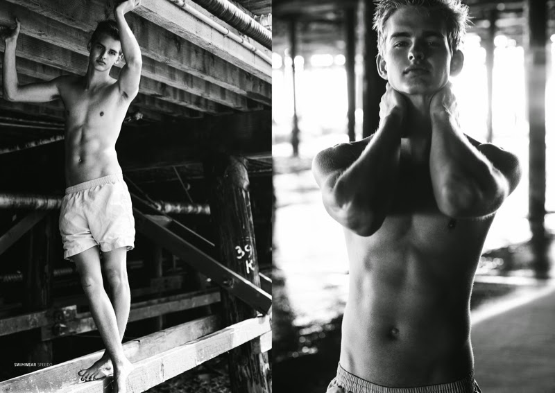 Under the Boardwalk–Fusion fresh face Dylan Hall connects with photographer AJ Ford for a simple shoot under the boardwalk for Jon magazine. Celebrating summer with a welcomed simplicity, Dylan is captured in classic black & white photography. Posing for the relaxed images, Dylan wears swimwear from Speedo and Tattee Boy.” -The Fashionisto