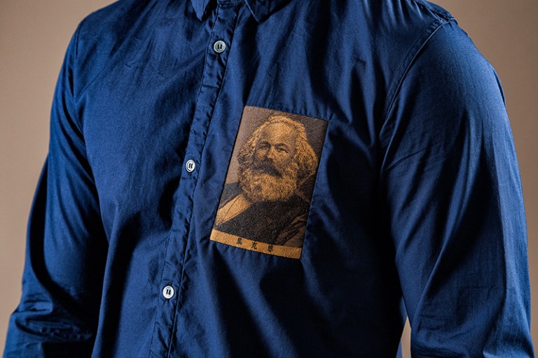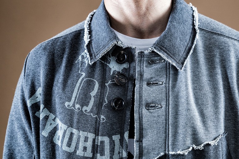 Standout garments include a frayed patchwork coat from 2003′s “Paperdoll” range, the fake print jacket of 2004 “But Beautiful” collection, and 2012′s “Psyco Color” Anarchy Shirt featuring philosopher Karl Marx. Each garment features a unique label displaying the year it was created and the collection’s title.