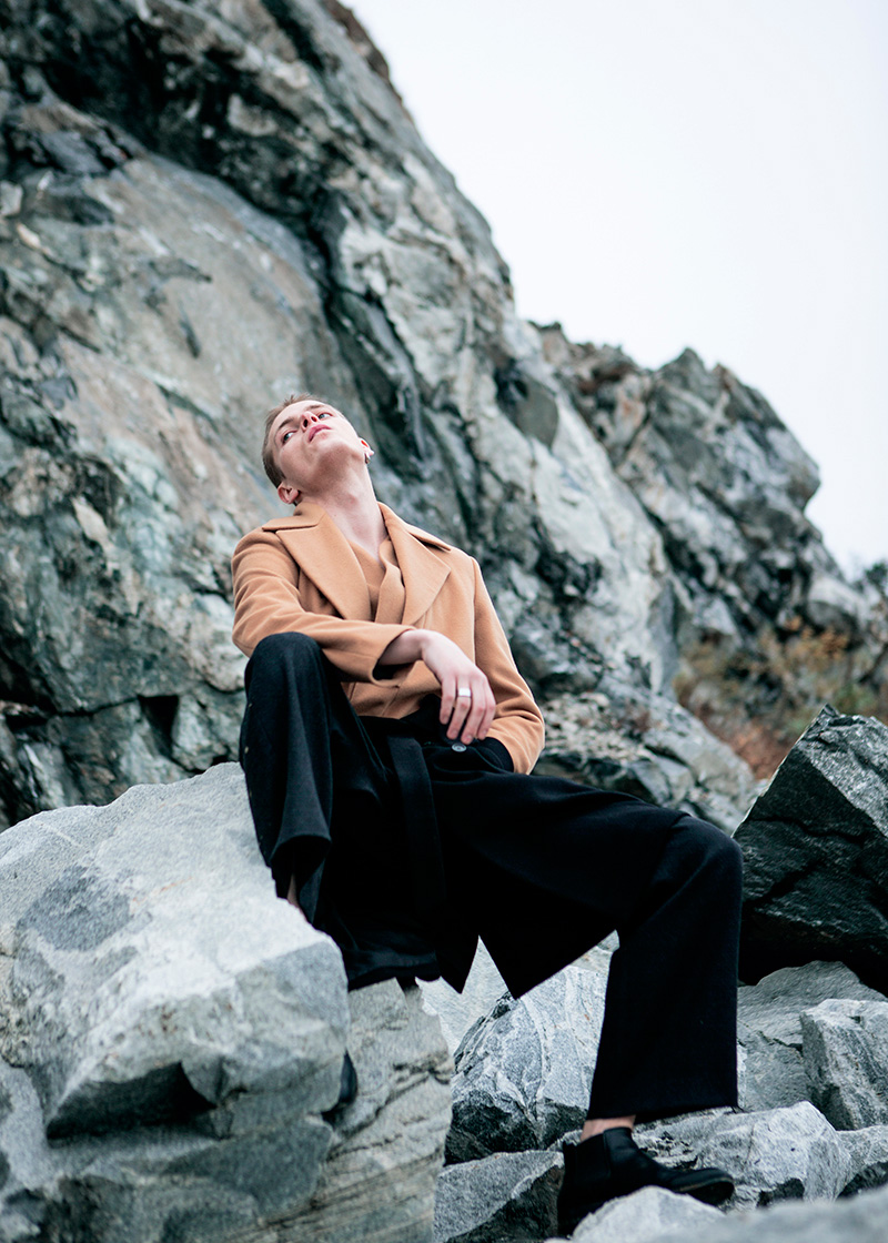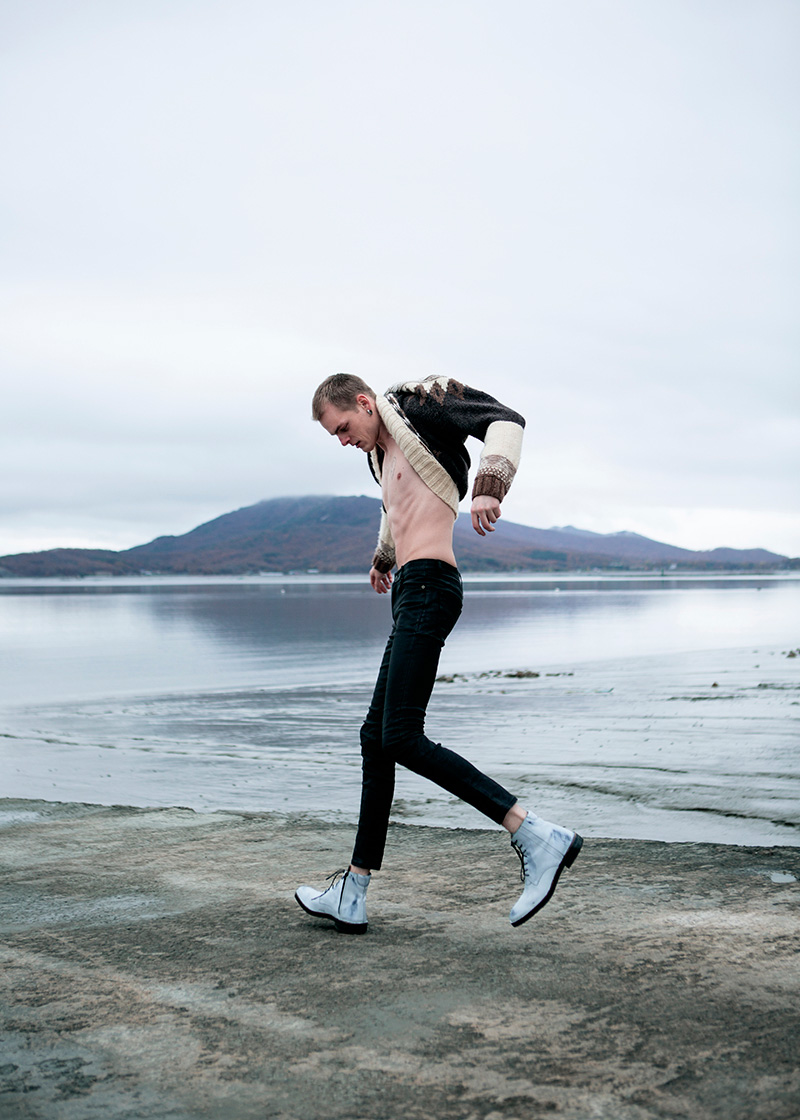 Aleksandr Mizev photographed and styled by Sang-Hun Lee with pieces from Acne Studios, Heegui, Maison Margiela, Raf Simons, Vetements and Weekday, in exclusive for Fucking Young! Online.” – FY Magazine.es