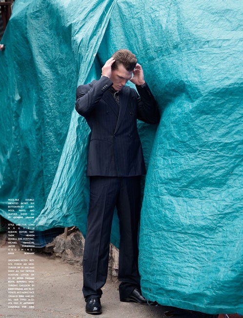 Photographer Nicolas Wagner captured models Emil Dostovic, Jacob Furgerson and Michael Van Meurs in the editorial ‘Upper Cuts’ from the latest issue no. 111 of Flaunt magazine. Courtesy of – Homotography