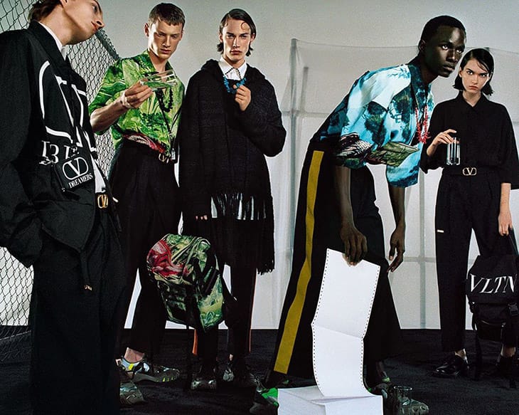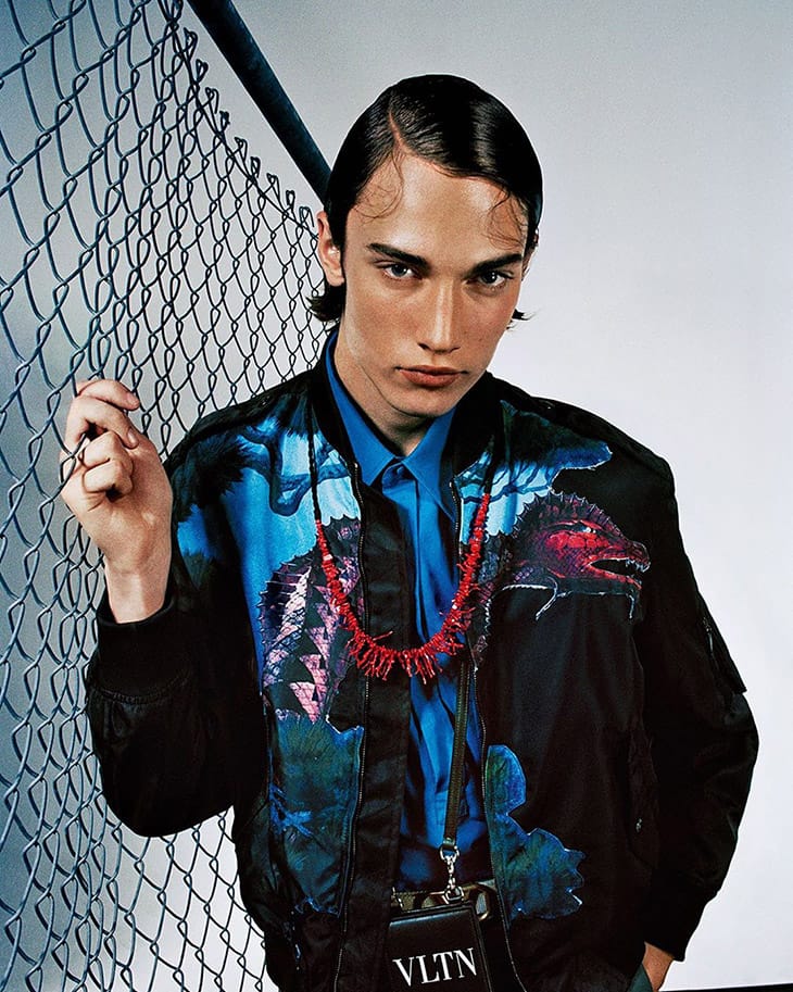 “Discover Valentino‘s Spring Summer 2020 menswear campaign featuring Braien Vaiksaar, Freek Iven, Maikls Mihelsons, Malick Bodian and Steinberg captured by fashion photographer Hugo Comte. In charge of styling was Joe McKenna, with set design from Andrew Lim Clarkson. In charge of beauty were hair stylist Anthony Turner and makeup artist Hiromi Ueda.” – Malemodelscene.net