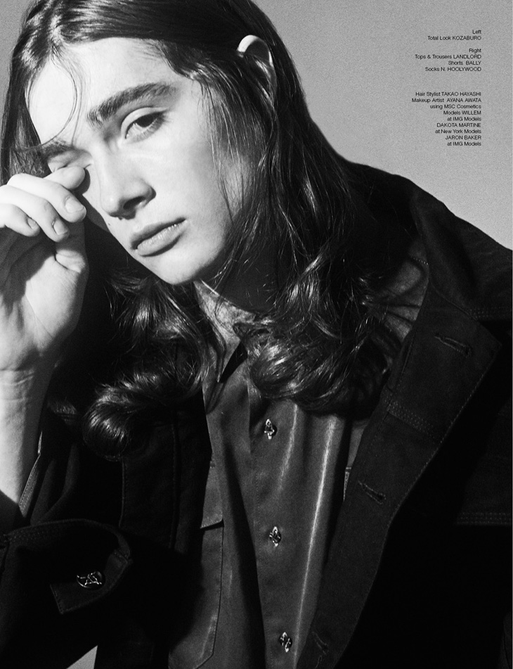 “Fashion photographer Go Minami captured Vanitas story featuring Dakota Martine at New York Models, Jaron Baker and Willem, both at IMG Models, for our MMSCENE Magazine‘s Summer 2019 edition. In charge of styling was Mori, who for the session selected pieces from Bally, Issey Miyake Men, Missoni, Kozaburo, and N. Hoolywood.
