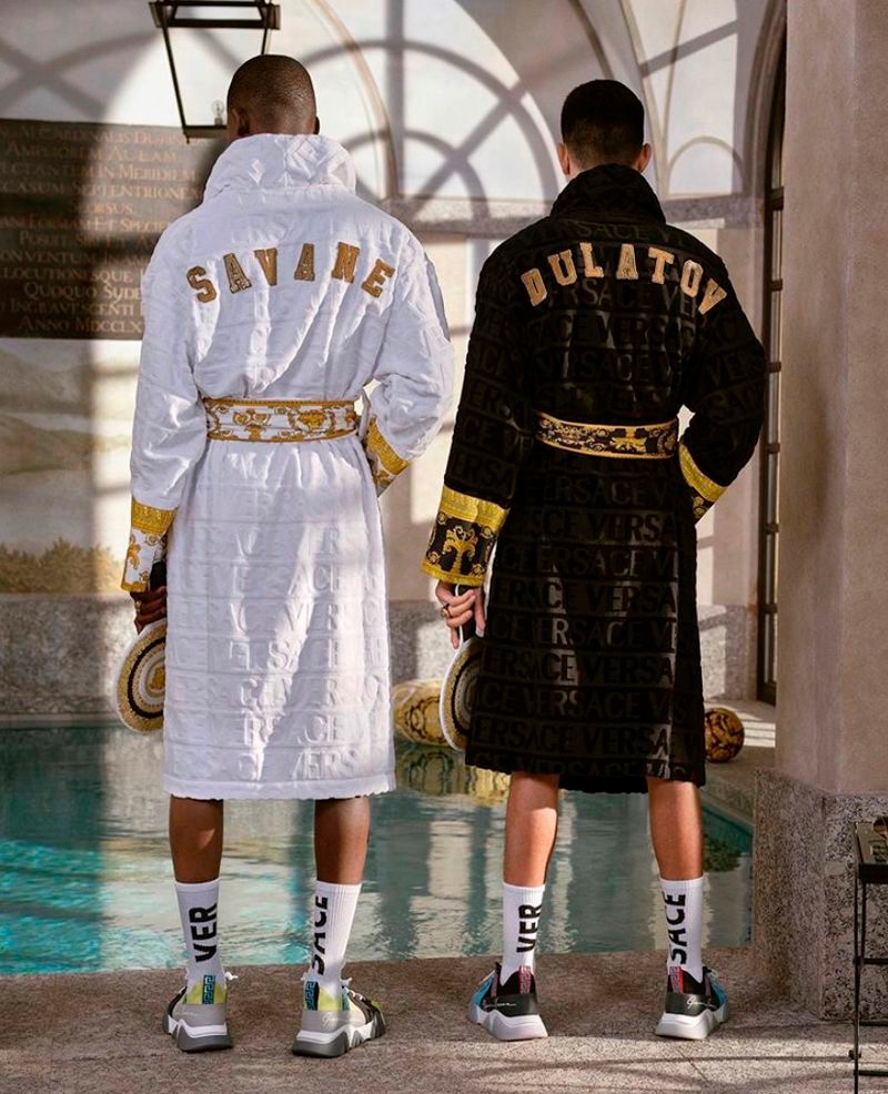 “Versace launched a new capsule collection for this Summer. For the campaign, the Italian brand tapped models Islam Dulatov and Ismael Savane. The duo was shot by Robi Rodriguez and styled by Jacob K.” – FY Magazine.es