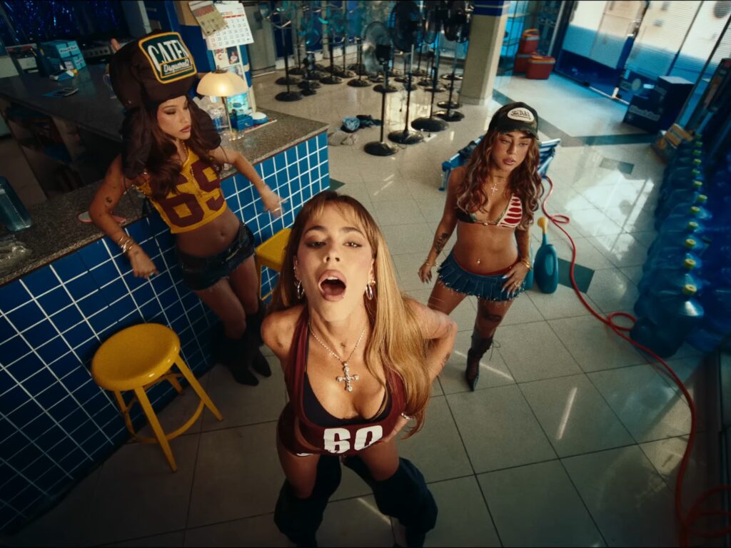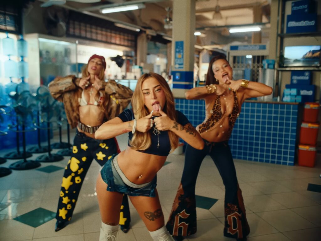 The South American beauties serve ice fiery looks along with whimsy themes making for a modern day iconic Latin video collaboration from Emilia, TINI & Nicki Nicole.