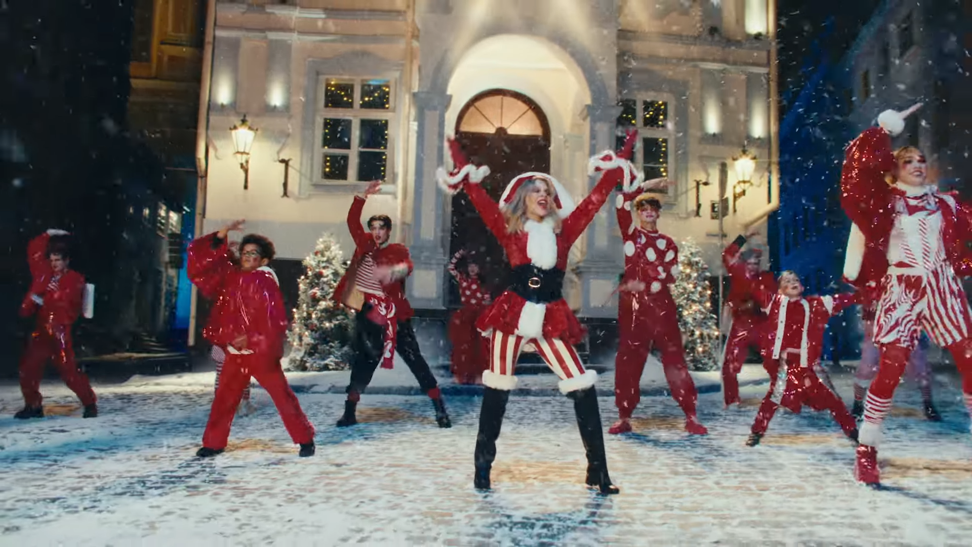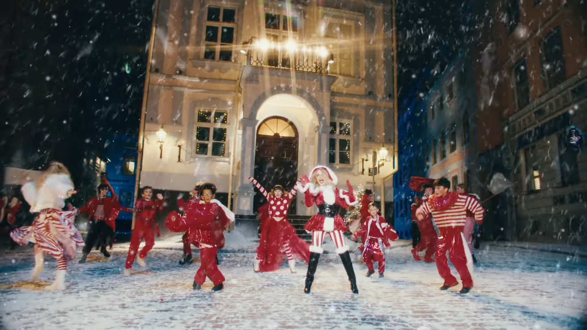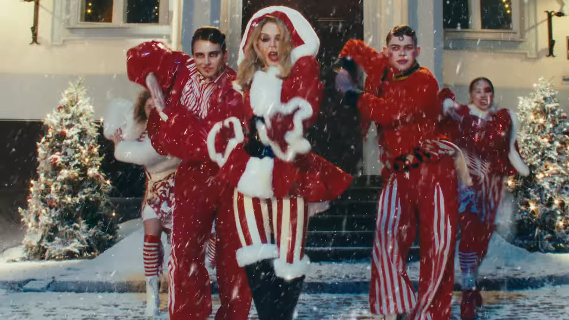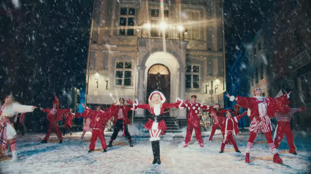 The video? Kylie recreates the iconic flying lift moment, with glitter, camp, and a wink — pure holiday pop spectacle. Directed by Sophie Muller (longtime Kylie collaborator), it’s a neon-synth rush with disco sparkle.