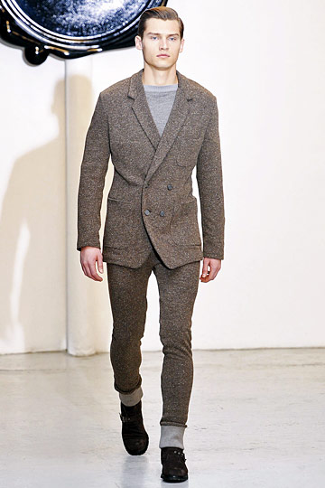 The misses, although few (or perhaps due to this fact) were particularly notable. The plaid suit and overcoat, fit for the silliest sartorialists on Carnaby Street, stuck out, as did a mismatched sweater thing, that somehow combined five different knits and leather.