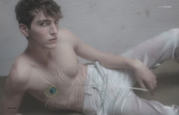 For the story Vincent is wearing selected looks from Kenzo, Acne Studios, Album, Harmony, Levi’s, Jonathan Liang, Cerruti 1981, and Studio Pierre. Photo assistance Raphael de Castro & Lucas Meyer.” – Malemodelscene.net