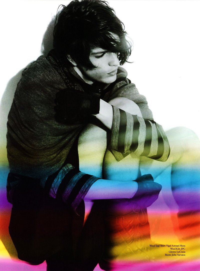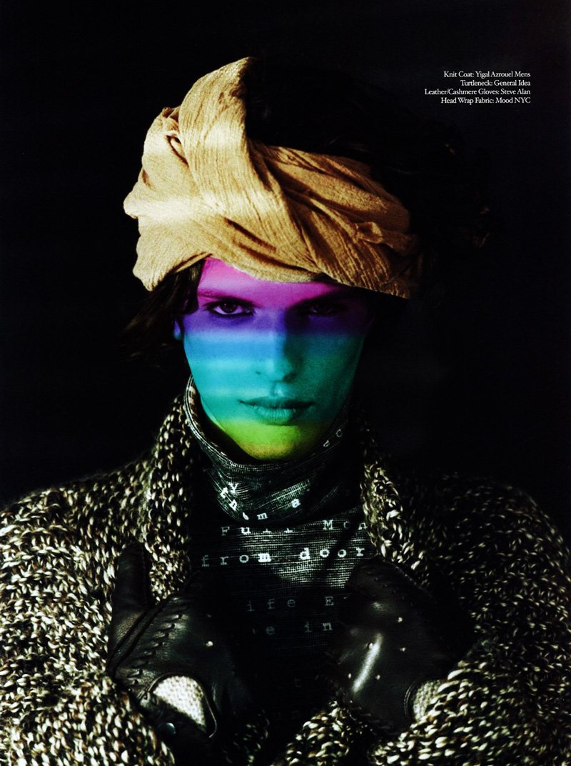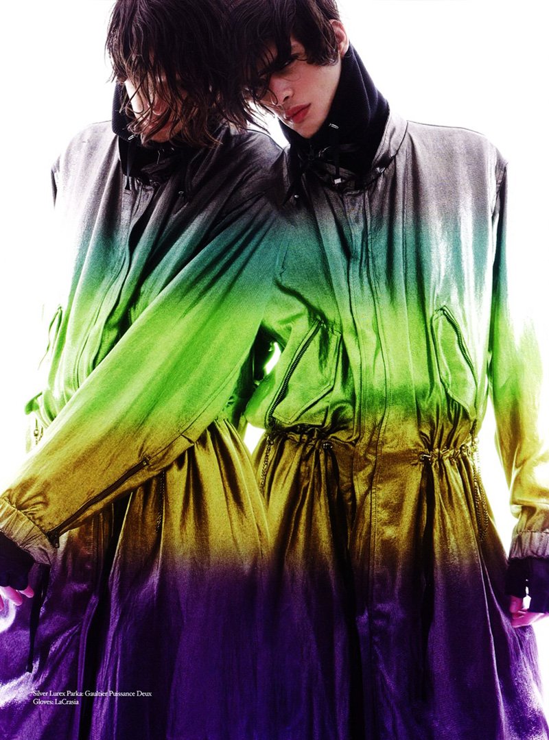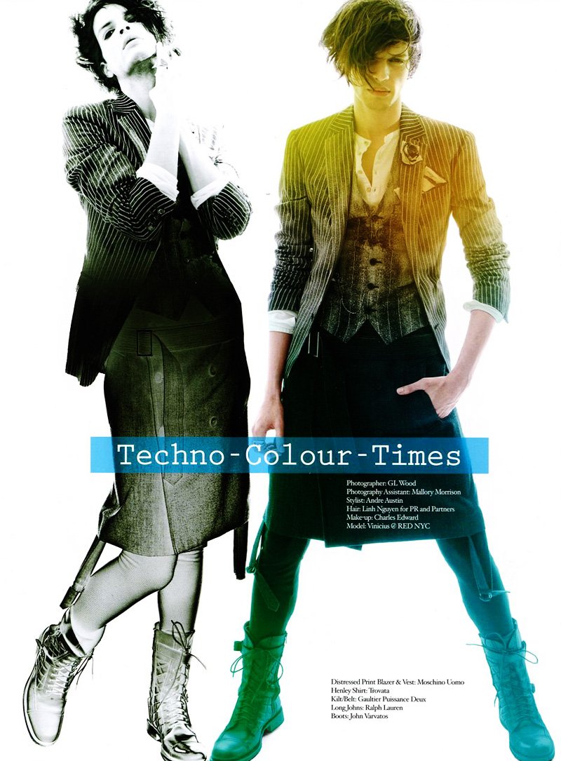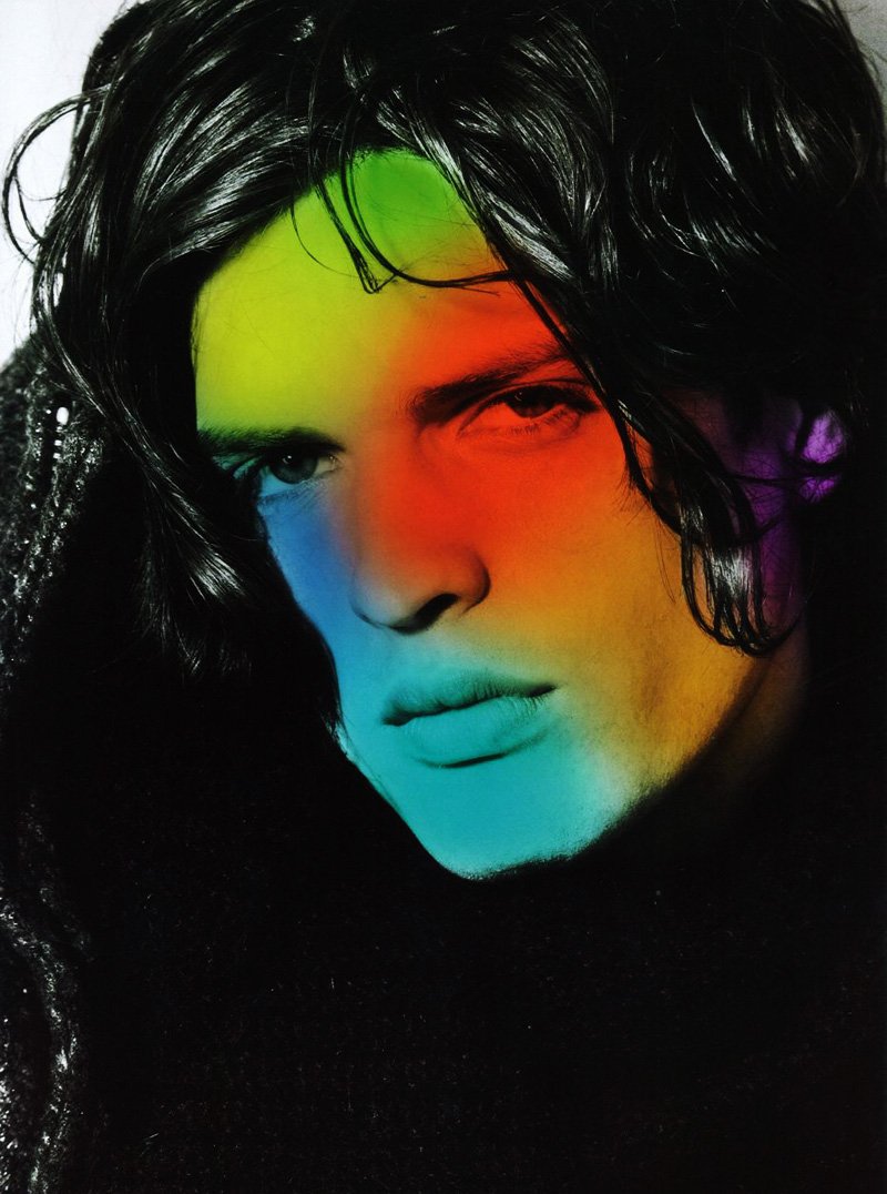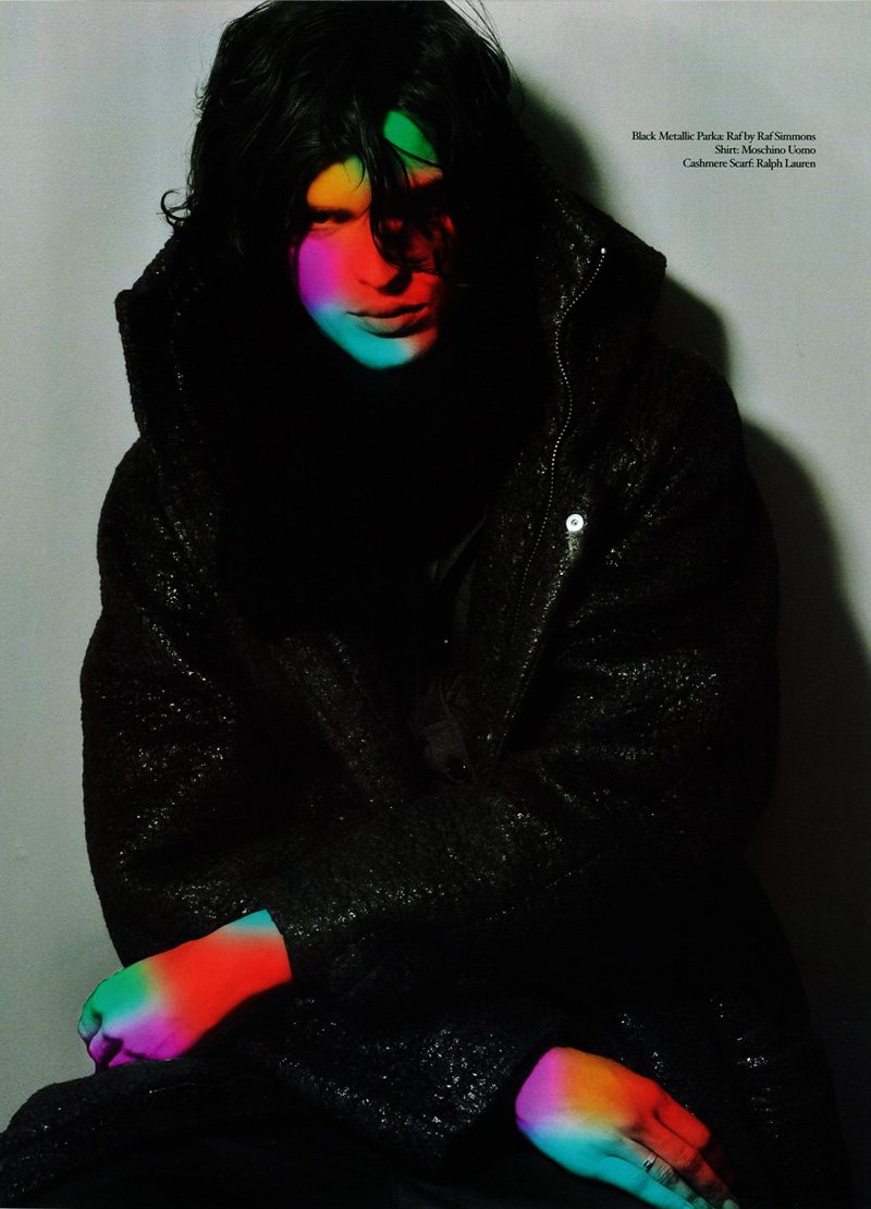 “Photographing Red model Vinicius Costa for Razor Red magazine, GL Wood reveals a technicolor world of the next dimension. Featuring the styling of Andre Austin, pieces from the likes of Raf by Raf Simons and Moschino see a new light as Vinicius traverses another reality.” -Fashionisto