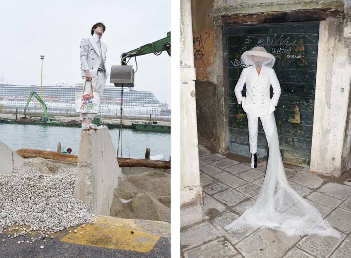 Titled ‘Mirror the World’. the SS16 campaign is about saving Venice. The problem there is one of repair, mass tourism on cruise ships and of climate change. Shot around the alleys & canals, shipyards and palazzos of Venice, the campaign highlights the beauty & decay of Venice and the urgent need to save it: www.weareherevenice.org” – FY Magazine.es