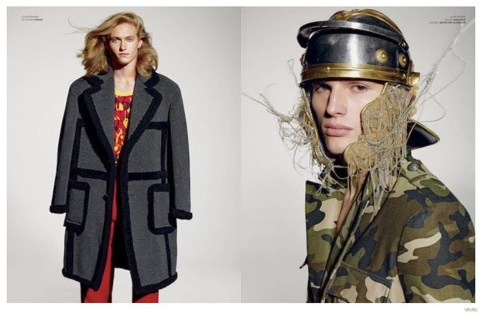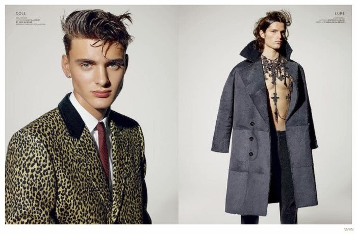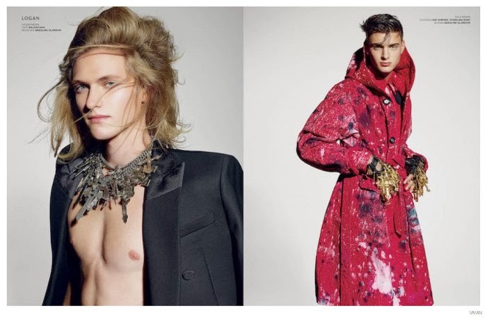 The Champions-Following an introduction last month, we catch up with the VMAN/Ford Model Search finalists in the latest issue of the magazine. Photographed by Richard Burbridge, who is known for his imaginative eye, the models are decorated as the champions they are, connecting with stylist Nicola Formichetti. Taking a victorious stance, winner Luke Thorp is joined by runner-ups Cole Farr and Logan Flatte. Courtesy of – thefashionisto.com