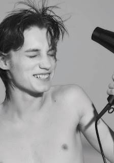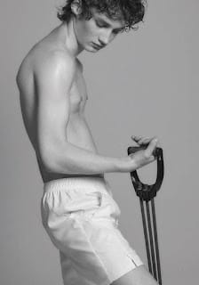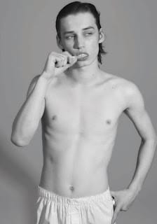 “Robert Semjonovs graces the cover of Think Twice’s spring-summer 2019 issue. Jai Odell photographs the model up and comer for a grooming story. The outing brings together the talents of hair stylist Edward Lampley and makeup artist Laura Stiassni. Going through a morning routine, Robert is pictured brushing his teeth, combing his hair, working out, and more.” – TheFashionisto.com