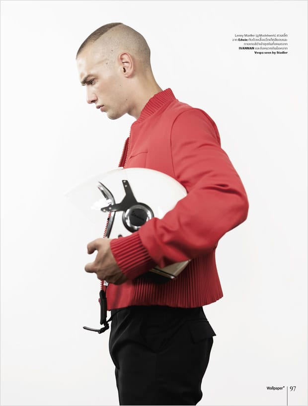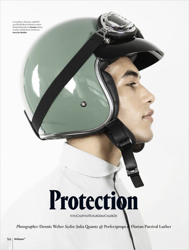 “Fashion photographer Dennis Weber teams up with stylist Julia Quante at Perfect Props for the cover story of Wallpaper* Thailand‘s July 2016 edition. Stars of the Protection session are Max Bender, Ryan Tift, Carl Hardorp, Leroy Moritz Aiyanyo, John Schwenzer, Philipp Muehlenberg, Lenny Mueller, Jamil Issa, and Mathis. Hair and makeup by beauty artist Annika Jeck.” – Malemodelscene.net