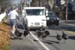 Present-day developments: Massachusetts mail carrier chased by 3 wild turkeys!