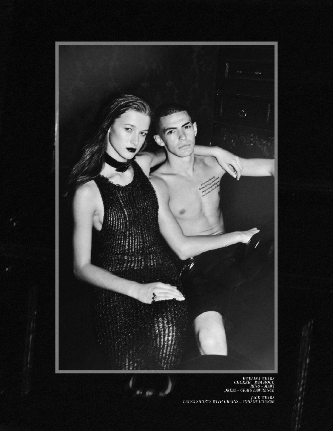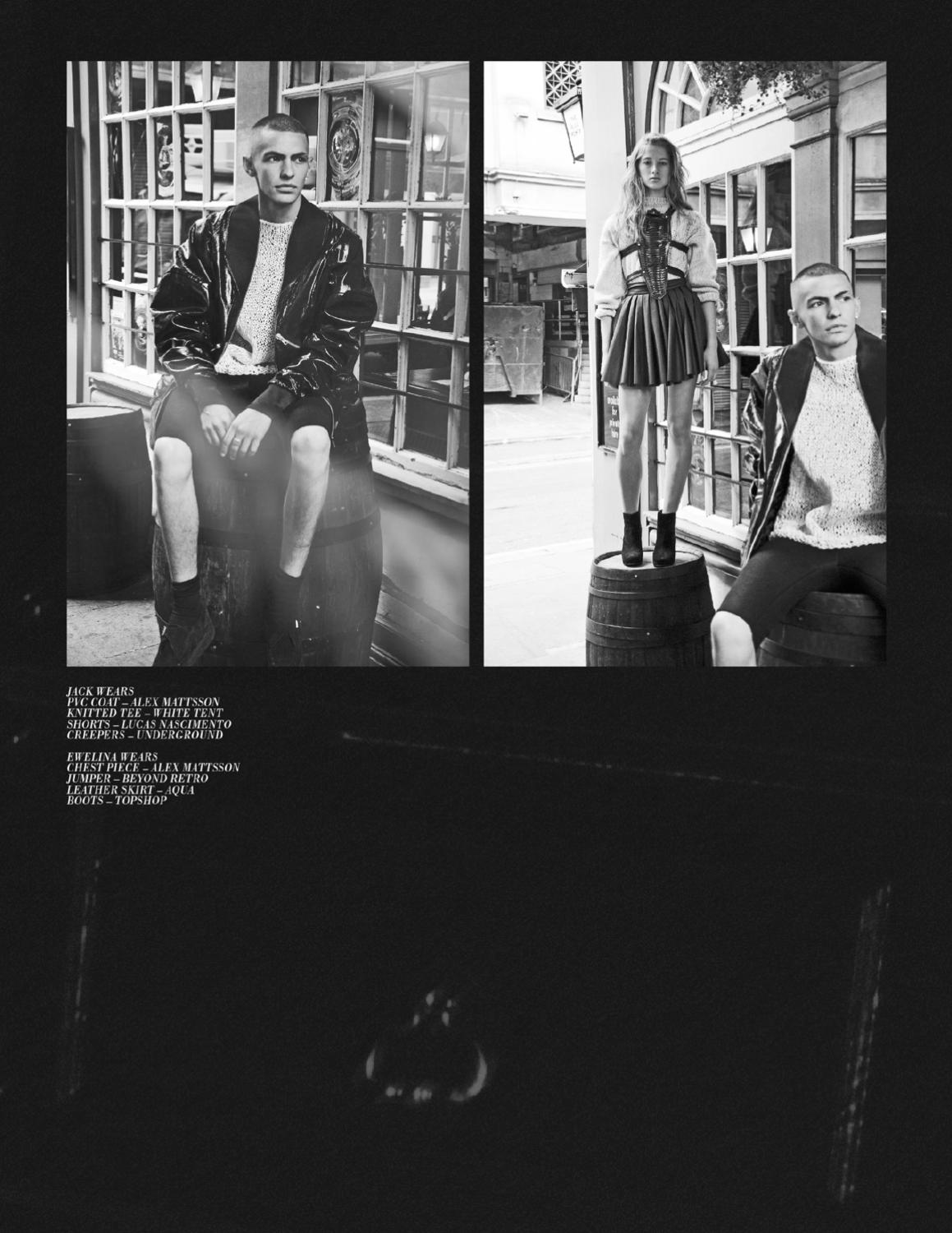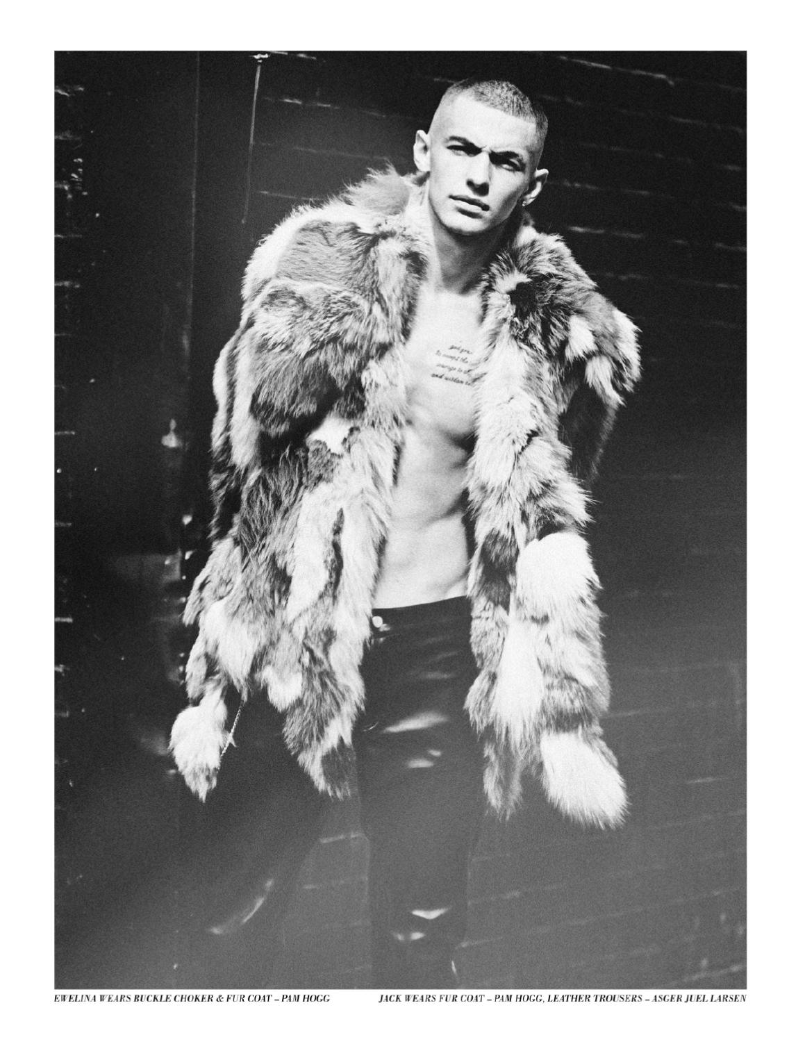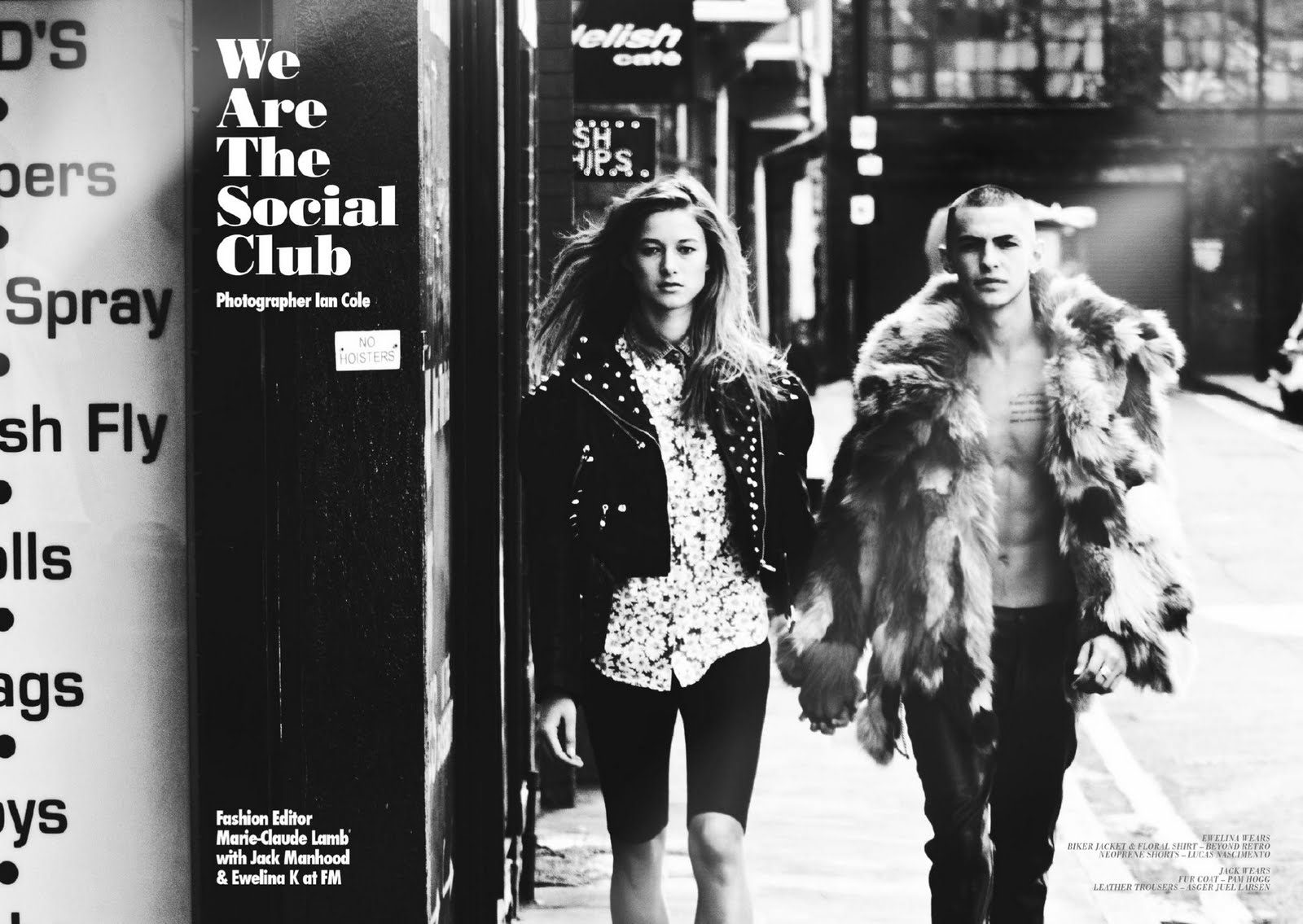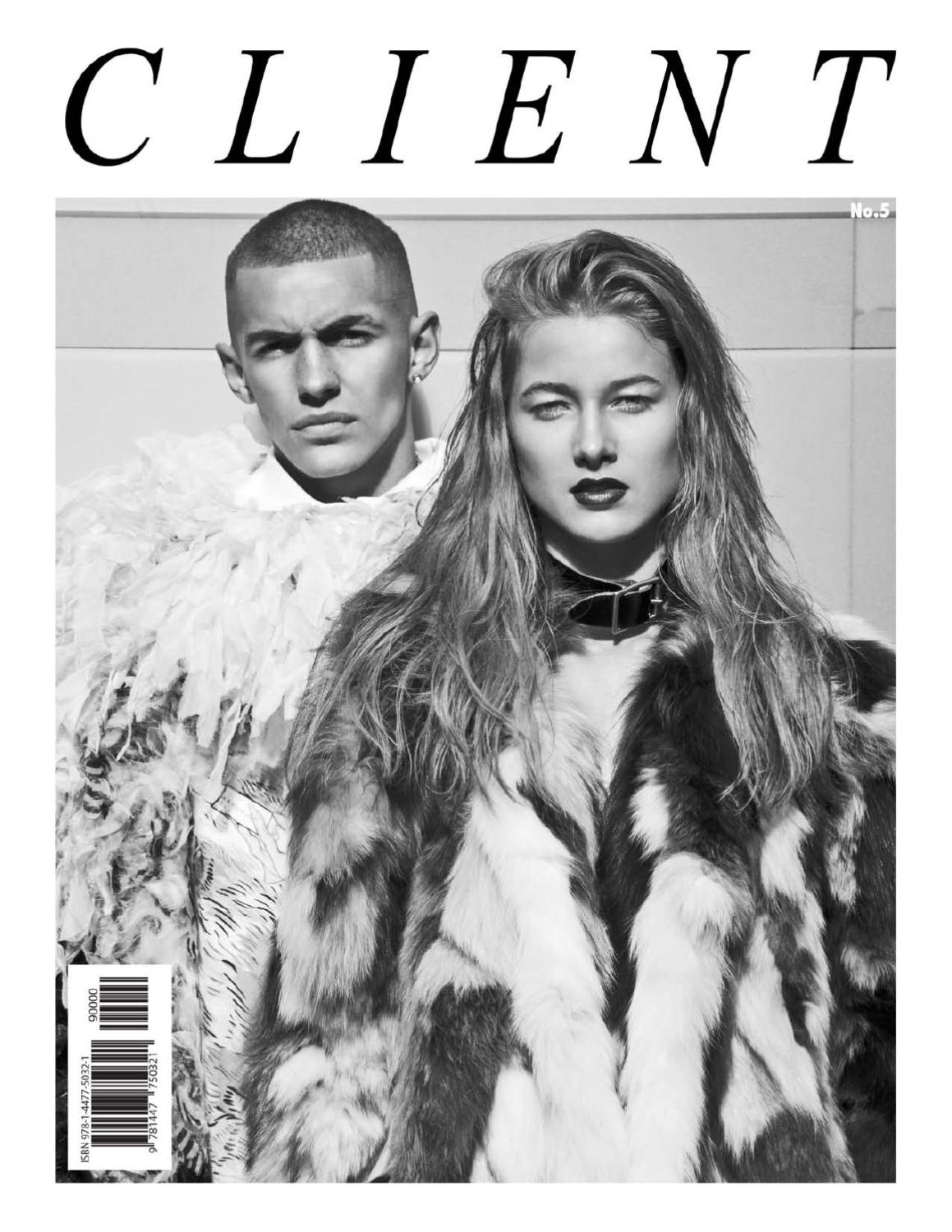 Jack Manhood appears in the cover of Client’s fifth issue shot by the magazine’s editor Ian Cole. In the accompanying editorial, Jack appears with Ewelina to form their own social club. Marie-Claude Lamb styles the duo in youthful and rebellious looks. Courtesy of hommemodel.blogspot.com