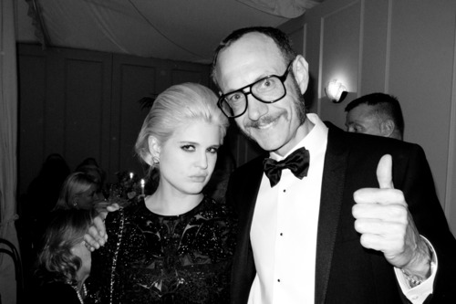 We wish we’d been there, but since we weren’t, let’s look at these pictures and pretend. Like, remember when Terry got fellow photogs Mario Sorrenti, David Sims and Giovanni Testino to pose Richardson-style with their thumbs up? And remember when Daphne Guinness wore that really bizarre thing on her head? And when Karen Elson and Jack White acted like best friends even though they’re getting divorced? How about when Kelly Osbourne and Alison Mosshart made out? So much fun!” -Fashionista.com