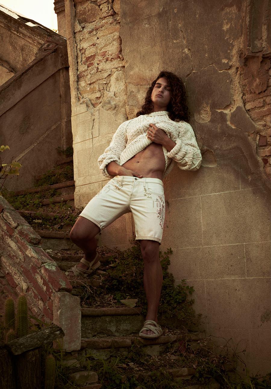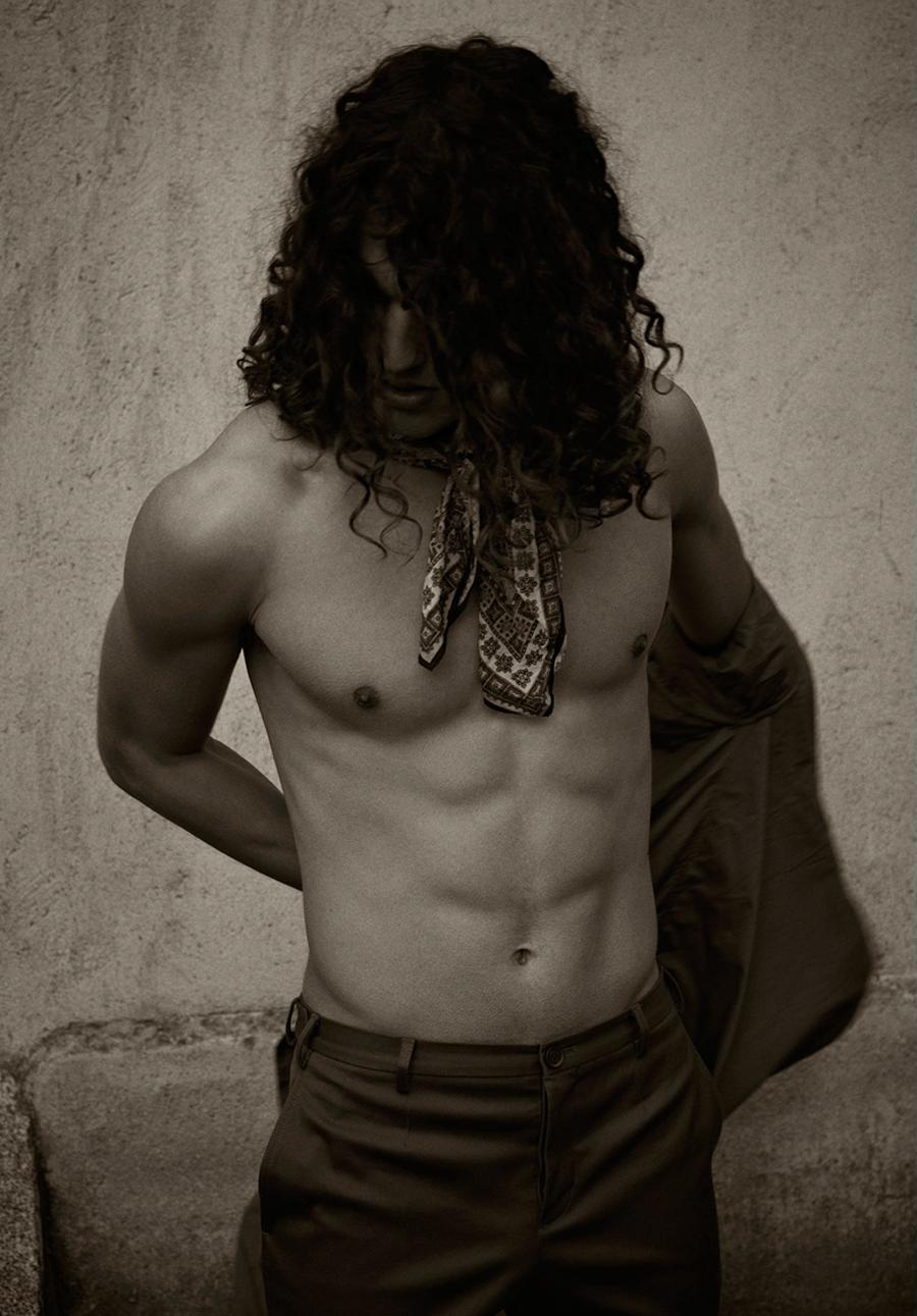 Travis Cannata appears on one of the five covers of Hercules’ 10th issue, shot by Mariano Vivanco and styled by David Vivirido. Travis, who can currently be seen in the campaign for Frankie Morello, bears some skin and a bit of his soul in the multi-page editorial, alongside Regina Feoktistova. The shoot, which takes classic male archetype from the anciet Greeks and Romans and juxtaposes that with the modern clothes from designers like DSquared2 and Gianfranco Ferre. Courtesy of – hommemodel.blogspot.com