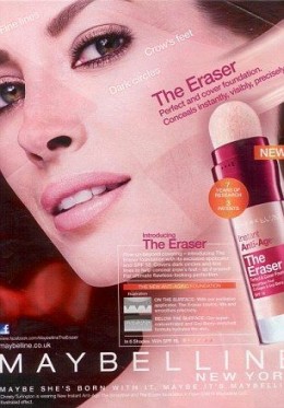 No spam. Unsubscribe anytime.The Christy Turlington ads for Maybelline’s new Eraser foundation sticks were even more egregious. While a disclaimer in small print on the bottom of the ad states the image is an “illustrated effect,” the company admitted that they used digital re-imaging to “lighten the skin, clean up make-up, reduce dark shadows and shading around the eyes, smooth the lips and darken the eyebrows,” according to the Daily Mail.