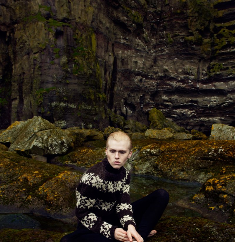 “Wiktor Hansson lands a starring role in Sean Kennedy Santos’ new fashion project. Dressed in an array of lush knits from Scandinavian label Gudrun & Gudrun, the Swedish model communes with nature and initiates Santos’ new conversation with fashion. View additional pictures from the shoot here.” -Fashionisto