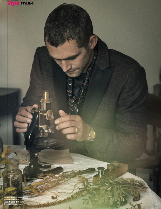 “Supermodel Will Chalker stars in Botanist story captured for the September 2015 issue of Esquire Hongkong by fashion photographer Olivier Yoan with styling from Steven Doan. Makeup is work of Daisy Harris D’Andel with hair styling by Takuya Morimoto. For the session Will is wearing Fall Winter 2015 pieces from Valentino, Canali, Ralph Lauren, Bottega Veneta, Gives and Hawkes, Berluti, Etro, and many more.” – Malemodelscene.net