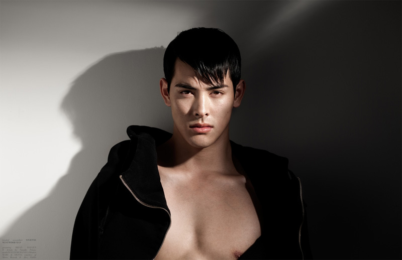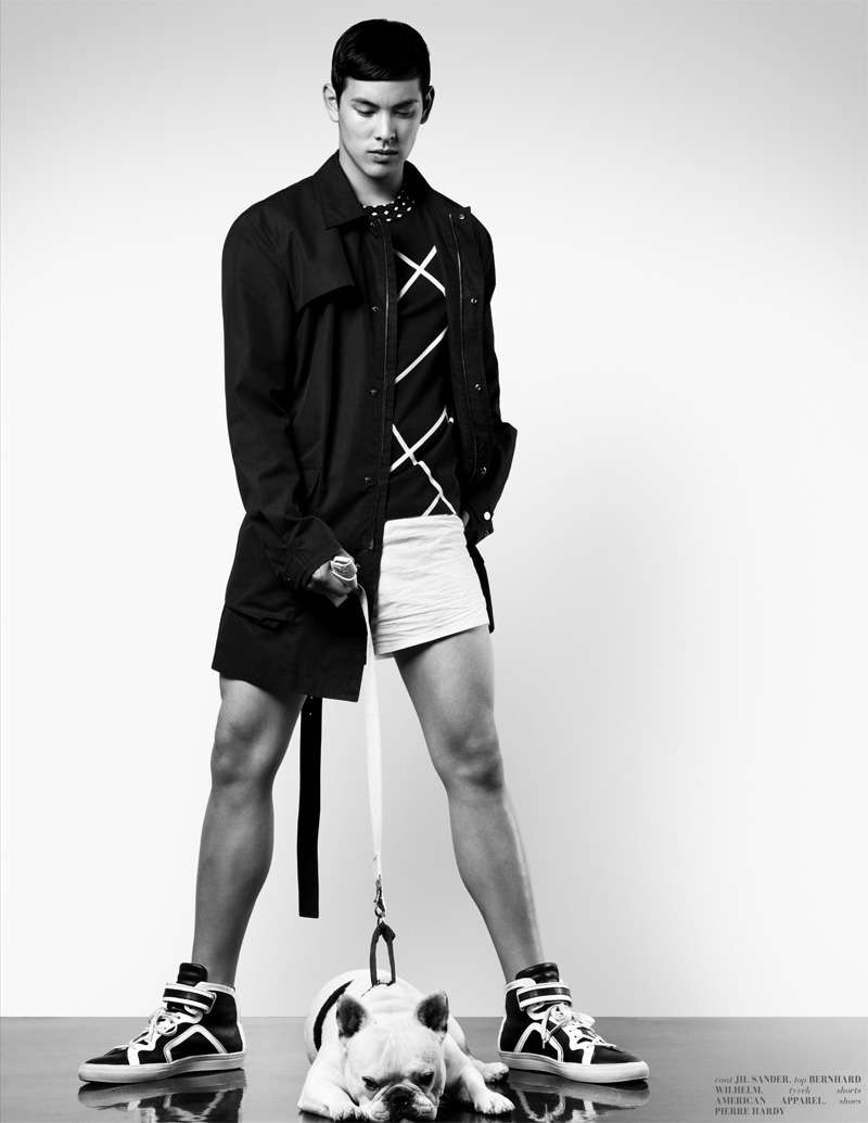 ‘LA Models’ William Chan stars in Richard Pier Petit’s recent feature for The Ones2Watch. Making a graphic statement in black and white garments styled by Eugene Ong, William gets a little help from man’s best friend.’ -Fashionisto