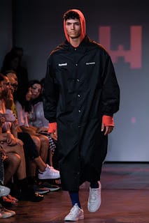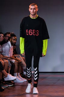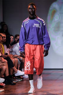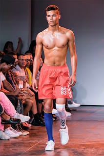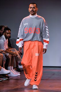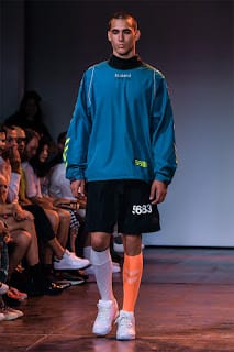 “As guests filed in, gate crashers and all (and there were lots), a group of soccer players-cum-models were running laps around the catwalk. Their coach hustling them on. Glistening brown bodies misting in sweat. It felt like an intrusion as we watched them huddle for a team pow wow. Dressed in Hummel athletic gear, a Danish athletic brand who partnered with Willy Chavarria to sponsor New York City soccer players with documented an undocumented citizenship, they walked with poise, as if the catwalk were a college track. Then the show began.