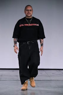 The correlation between the opening act and the collection wasn’t seamless, but the message was clear. Representation is needed. Chavarria does not conform. His castings are not of the traditional sunken face, rocker body type either. His men are full-blooded, full-boned Chicano. And his clothes are intended for such. Willy Chavarria may not be around forever, but his platform is ready and his spotlight set.” – FY Magazine.es