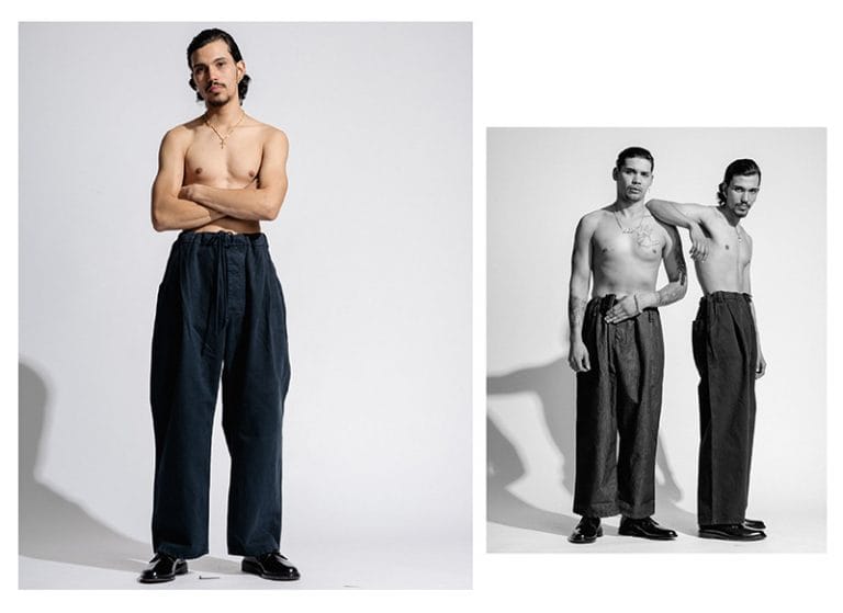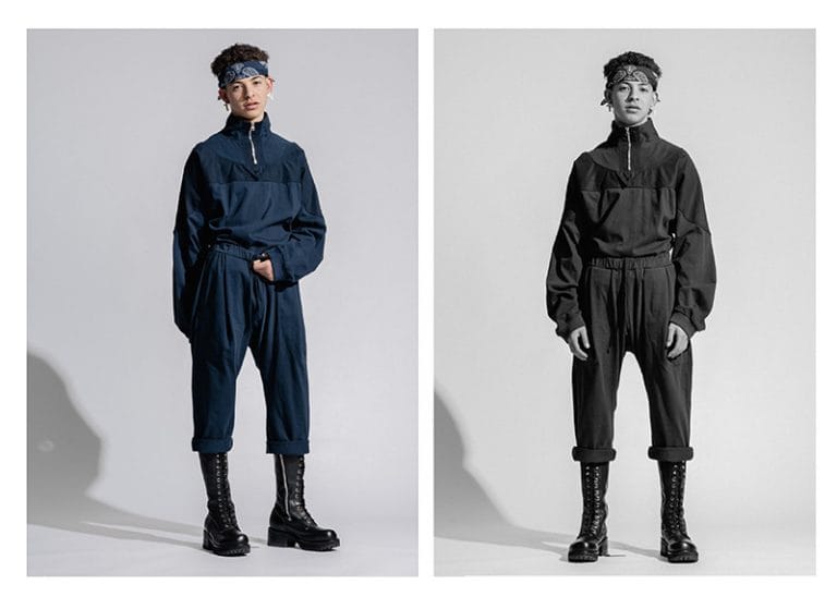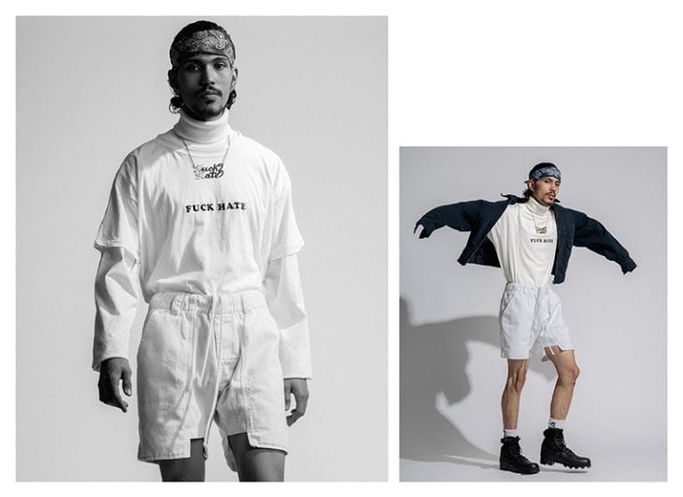Using all fine Peruvian cottons, the collection includes drop shoulder jackets, deep pleated draw string trousers and plush pima cotton knit tops and bottoms. All spiked with social empowerment slogans “I NEED LOVE”, “STAY BLACK” and “BROWN POWER”.