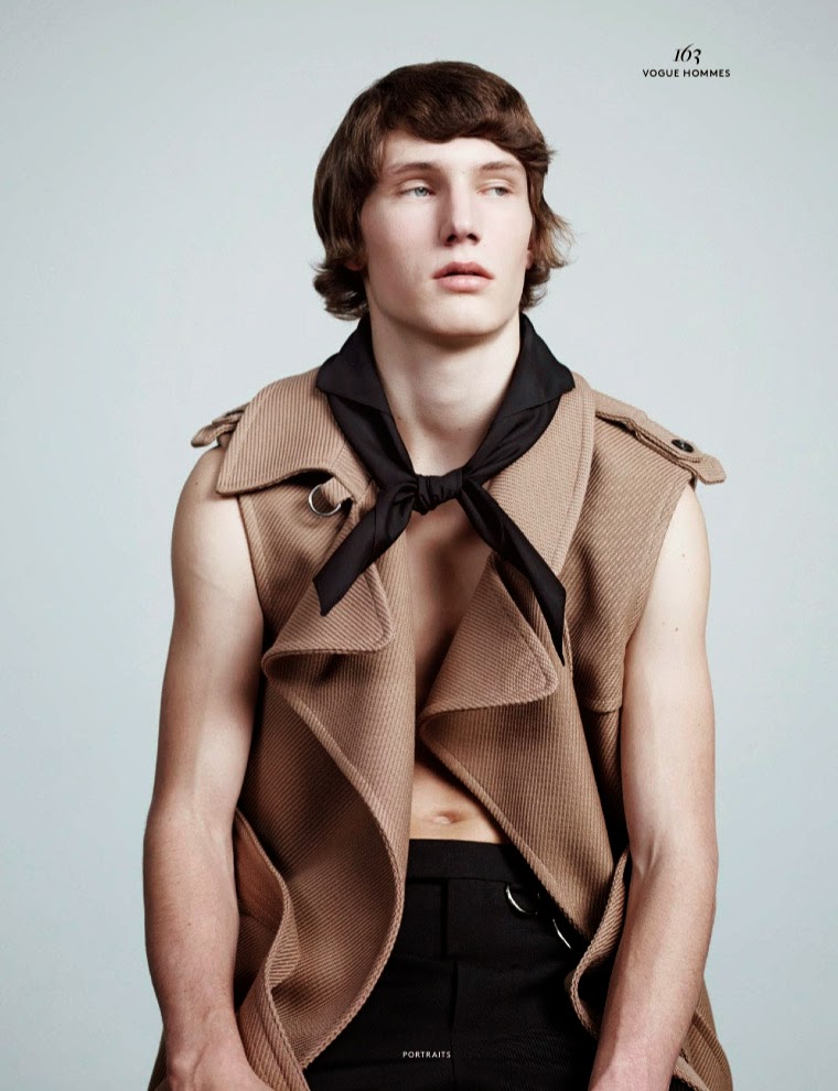 “Benjamin Eidem, Clément Chabernaud, Erik van Gils, Johannes Spaas, Niels Trispel and Tim Schuhmacher photographed by Willy Vanderperre and styled by Olivier Rizzo, for the Spring/Summer 2015 issue of Vogue Hommes magazine.” – FY Magazine.es