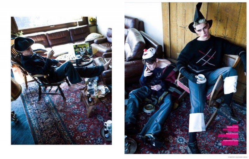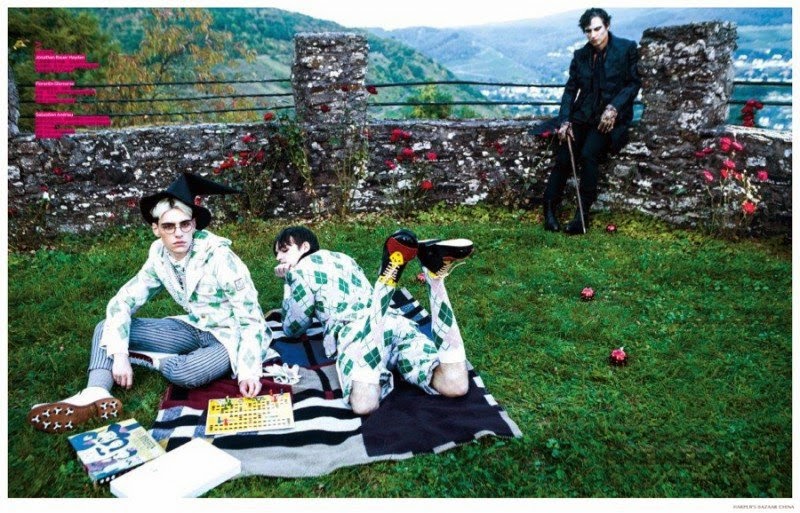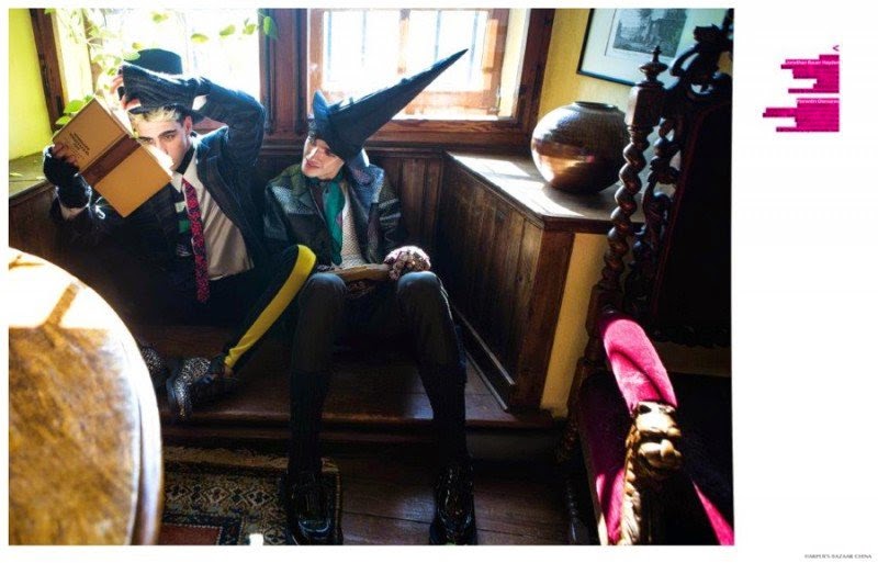 Witching Hour-Harper’s Bazaar China has wicked fun with its November 2014 issue, enlisting Elite Paris models Jonathan Bauer-Hayden, Florentin Glemarec and Sebastian Andrieu. Starring in a magical editorial, the boys charm with a spread lensed by fashion photographer Feng Hai. Wearing witches hats and mesh veils, Jonathan, Florentin and Sebastian are styled by Vincent Young, lending charm to fall-winter 2014 fashions from the likes of Givenchy by Riccardo Tisci. Courtesy of – thefashionisto.com