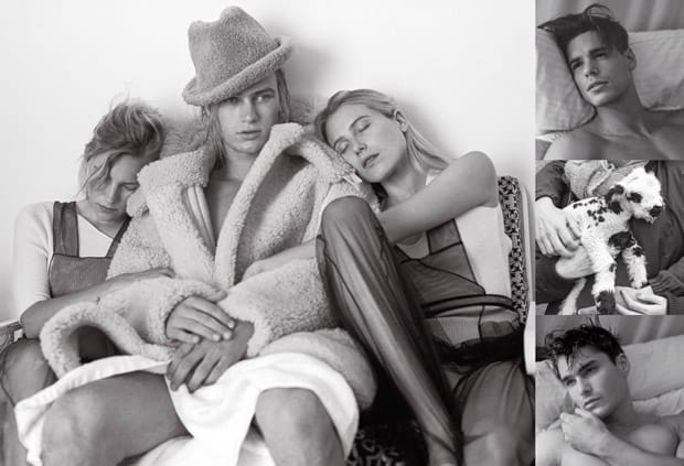 “Fashion photographer Bruce Weber teams up with stylist Deborah Watson for Wolves In Sheep’s Clothing story coming from the pages of V Magazine‘s latest edition. Stars of the session are Charlie Kennedy, Giovanni Bonamy, Miroslav Cech, Charlie Matthews, Bennett Jonas, Joey Greenstein, and Jules Horn. Hair styling is courtesy of Gerald DeCock using Oribe hair care, with makeup by Regine Thorre. Set design is work of Dimitri Levas.” – Malemodelscene.net