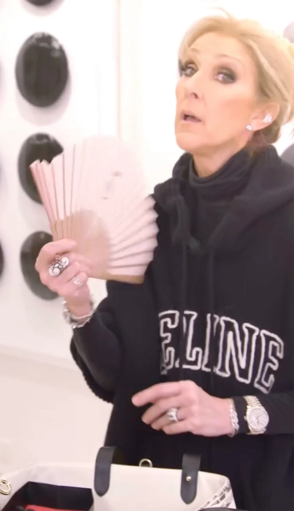 Today the vocal supreme goddess shared what her purse essentials are! In true Celine fashion. She unveils like only she can a microphone, dog food, a landline telephone, VIP passes, fan, perfume, and much more.