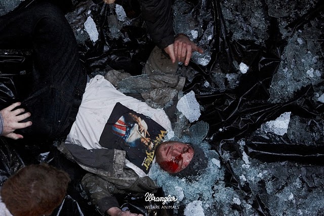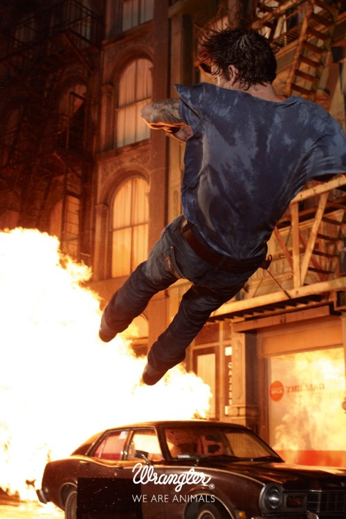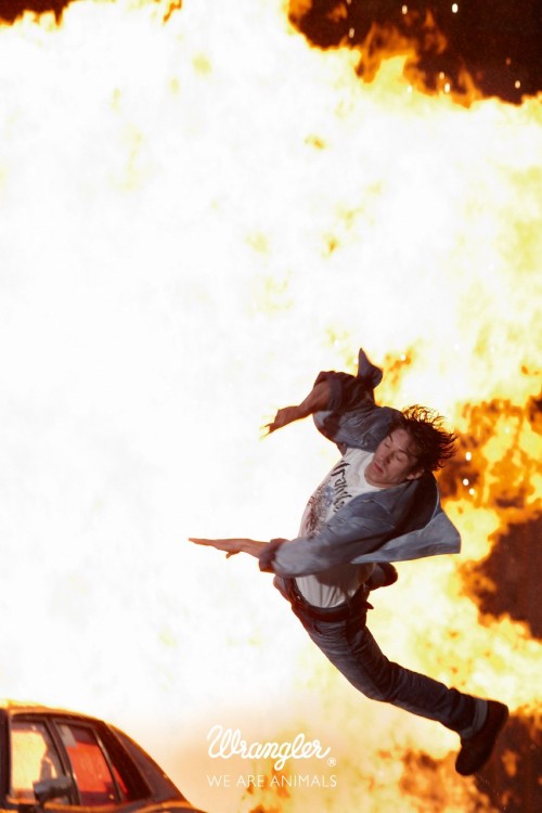Things get quite violent in the Wrangler Spring/Summer 2011 ad campaign by Cass Bird. Dubbed ‘Stunt’, the adrenaline-fuelled images are a continuation of the Wrangler We Are Animals campaigns. The new SS11 ads feature professional Hollywood stunt performers. Courtesy of – Homotography
