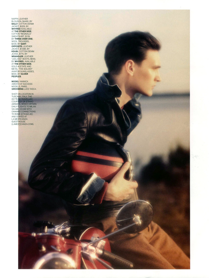 Rebel Down Under–Yannick Abrath scores a double-hitter following up his GQ Style Australia story with one for GQ Australia. Photographed by Laura Sciacovelli with styling by Wayne Gross once more, the Success model go for a casual mode of dress this time around. With hair slicked back, leather and denim signal the mood, featuring wears from Wrangler, Vanishing Elephant and more. Courtesy of – thefashionisto.com