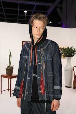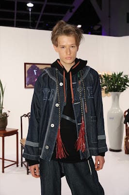 This collection is inspired by an emperor going out of the palace in a quest to learn the life of the people. Pieces like the Mandarin jacket, with denim and tassels strung together, reflect the designer’s youthful imagination and carefree attitude. Even though in “plain clothes”, there is a sense of pride and courage that is almost regal.