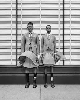 “Discover Thom Browne‘s Fall Winter 2018.19 advertising campaign featuring models Youssouf Bamba and Ajak Deng captured by fashion photographer John Juniper. Beauty is work of makeup artist Deanna Melluso at See Management, and hair stylist Cecilia Romero.” – Malemodelscene.net
