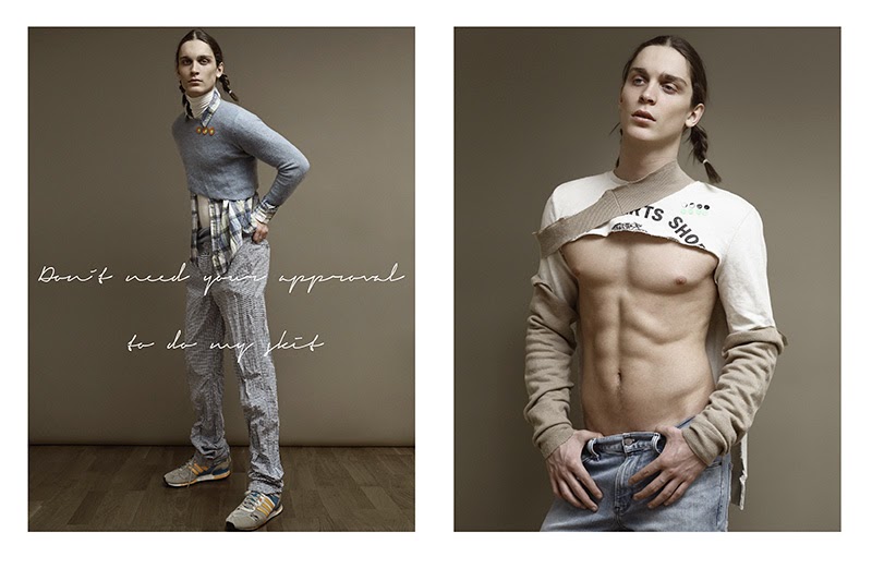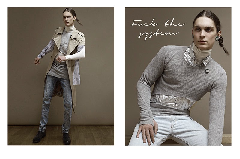 “Alexander at Modellink photographed by Bo Brinkenfalk and styled by Dejan Zlatanovic with pieces from Burberry Prorsum, Lanvin, Maison Margiela, Topman Design, H&M, Acne Studios and more, in exclusive for Fucking Young! Online.” – FY Magazine.es