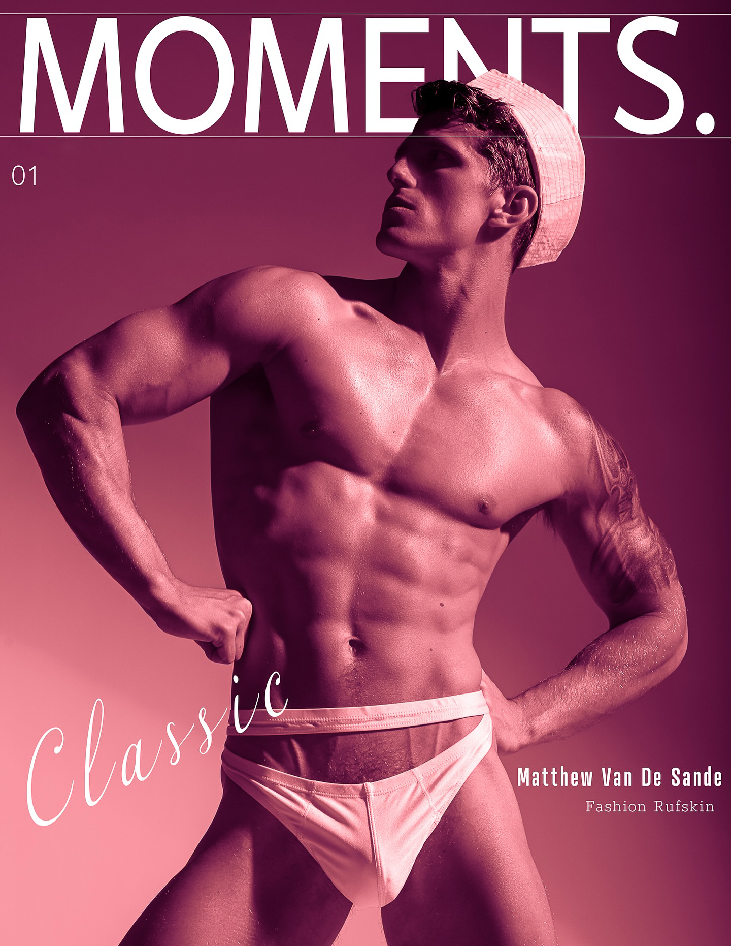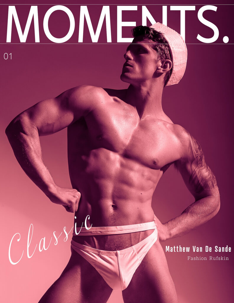 Matthew van de Sande, shot by Frank Louis in NYC, fronts the launch issue of his magazine Moments.