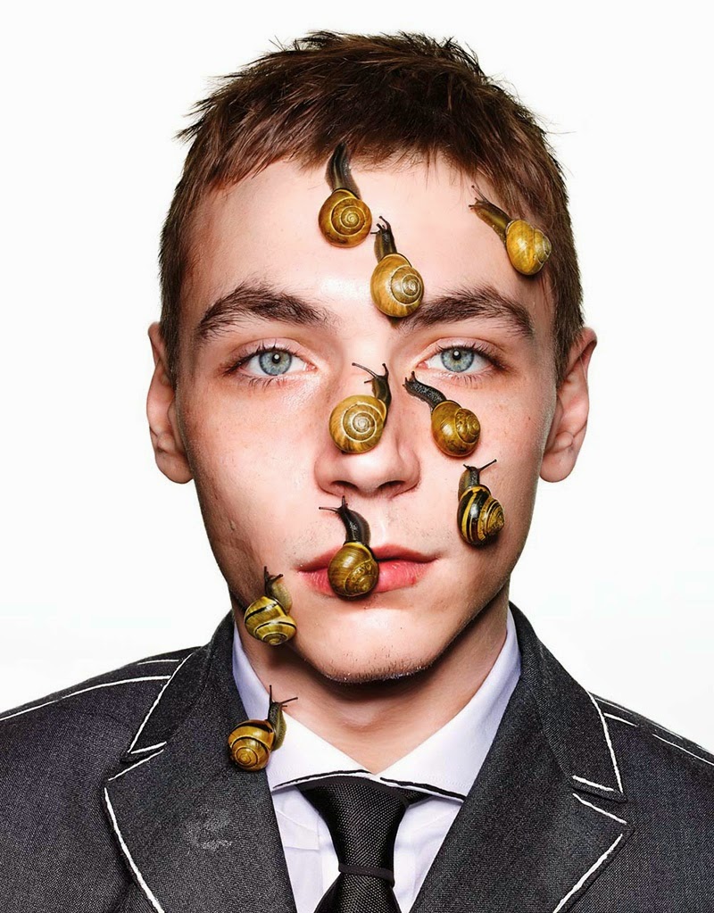 Unorthodox Beauty–Model Yuri Pleskun graces the pages of VMAN’s spring/summer 2014 issue with an unusual beauty story lensed by photographer Richard Burbridge. Outfitted by Robbie Spencer, Yuri is put to the ultimate model test with eccentric elements joining him that range from slugs and snakes to sand. Courtesy of – thefashionisto.com