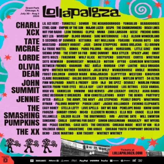 Dig out thee Lollapalooza lineup for 2026 featuri some of the most ginormous acts in music today!