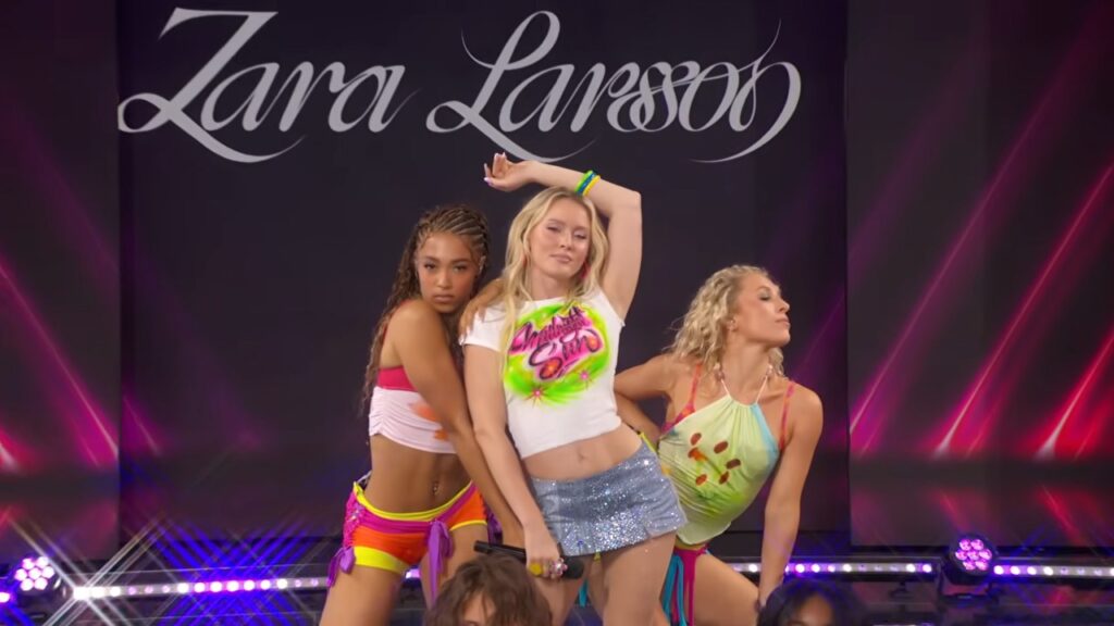 After a lackluster promo launch, Zara looks to be in full old-school pro pop star mode. The outfit, vocals, and choreography were all on point. And how happy are we to finally see her live on American TV?
