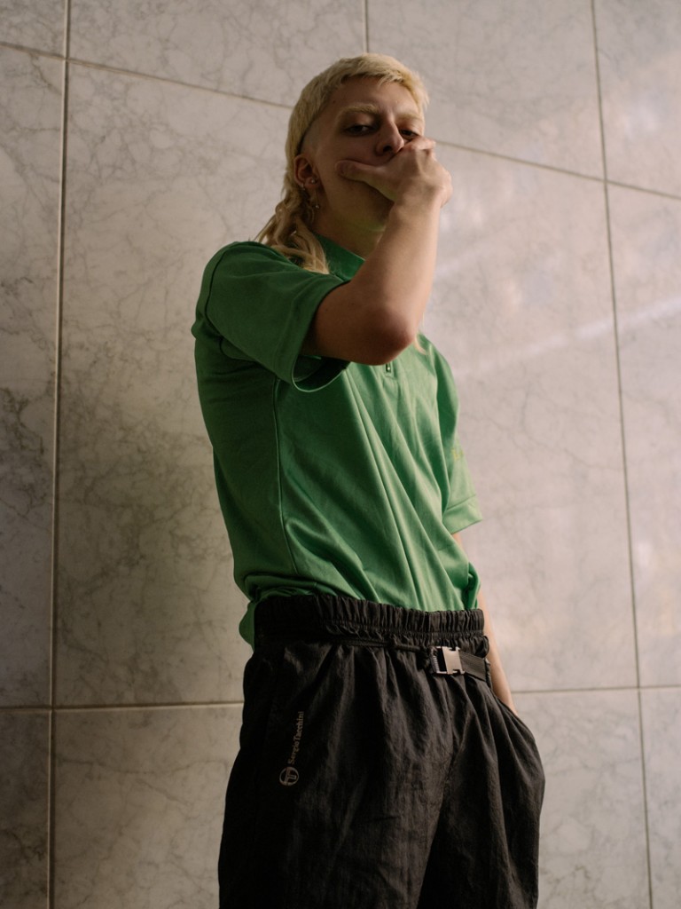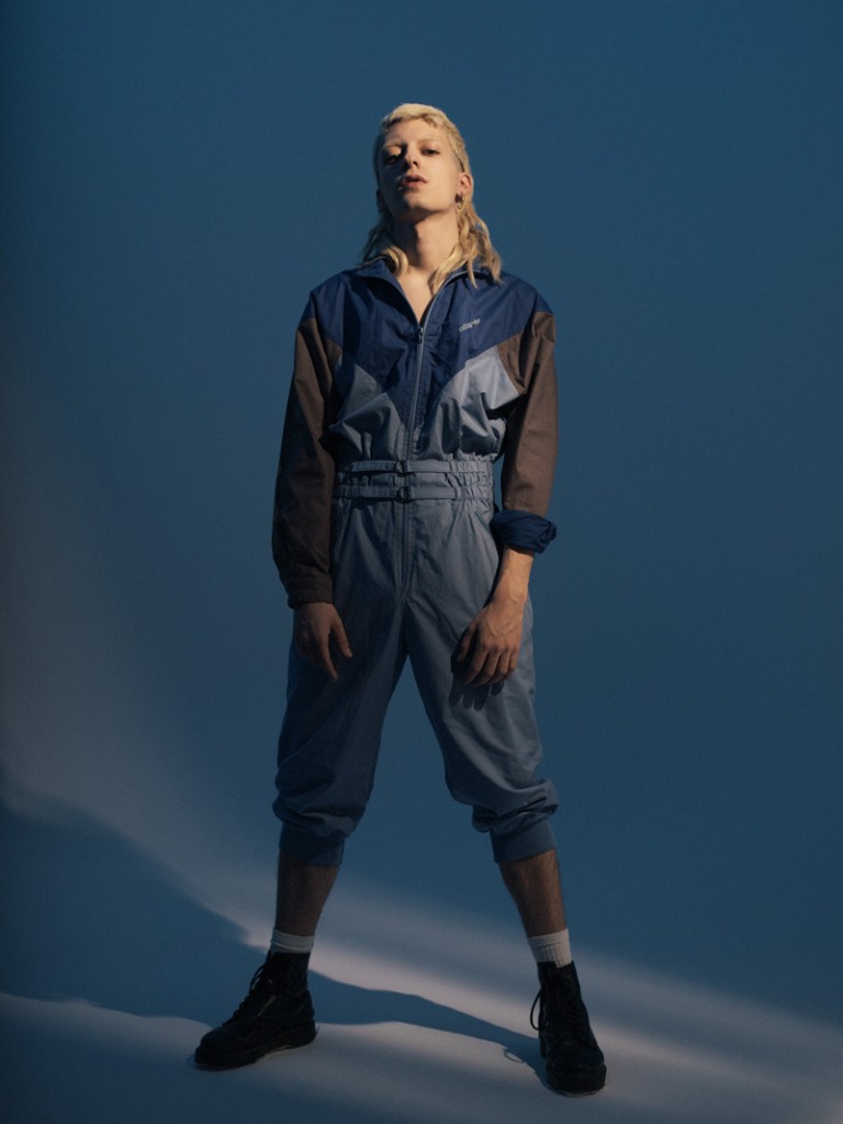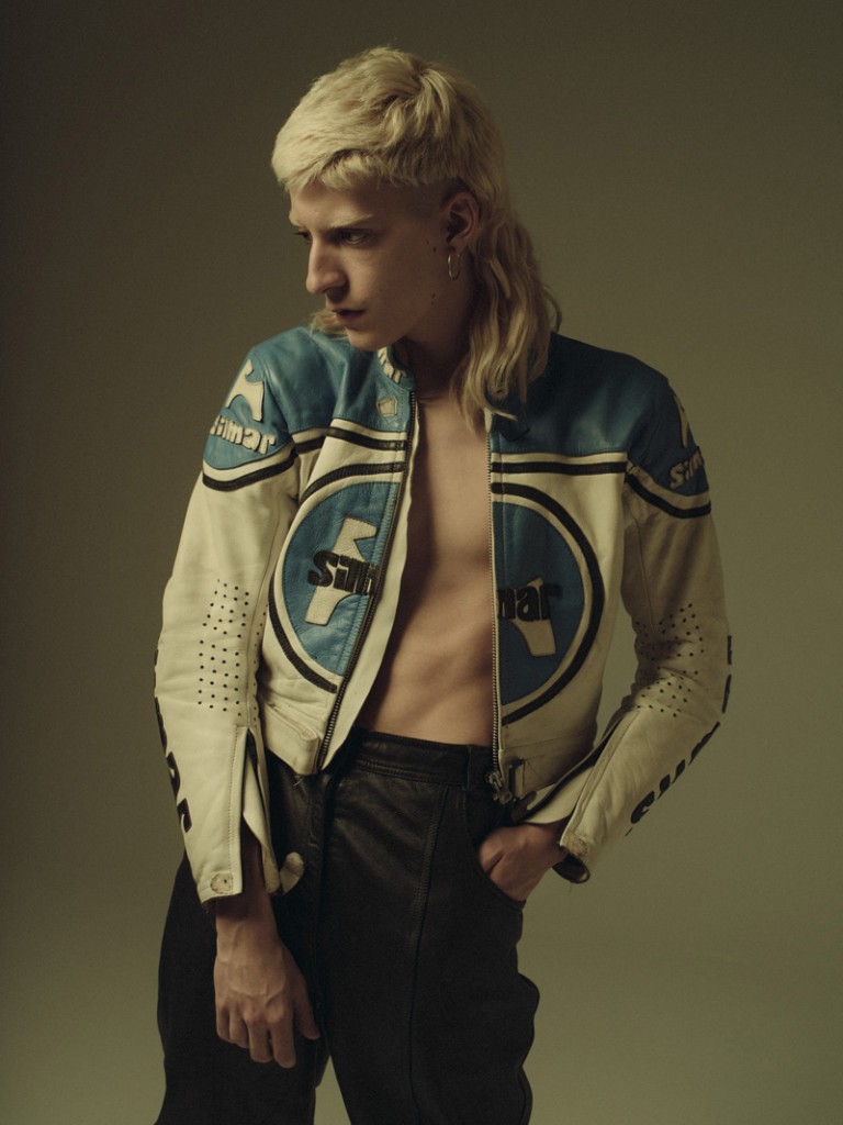 “Tony Perlo photographed by Agustín Fallas and styled by himself and Giorgia Fagá with pieces from Alpha Industries, Adidas, Bruegelmann, Dr. Martens and more, in exclusive for Fucking Young! Online.” – FY Magazine.es